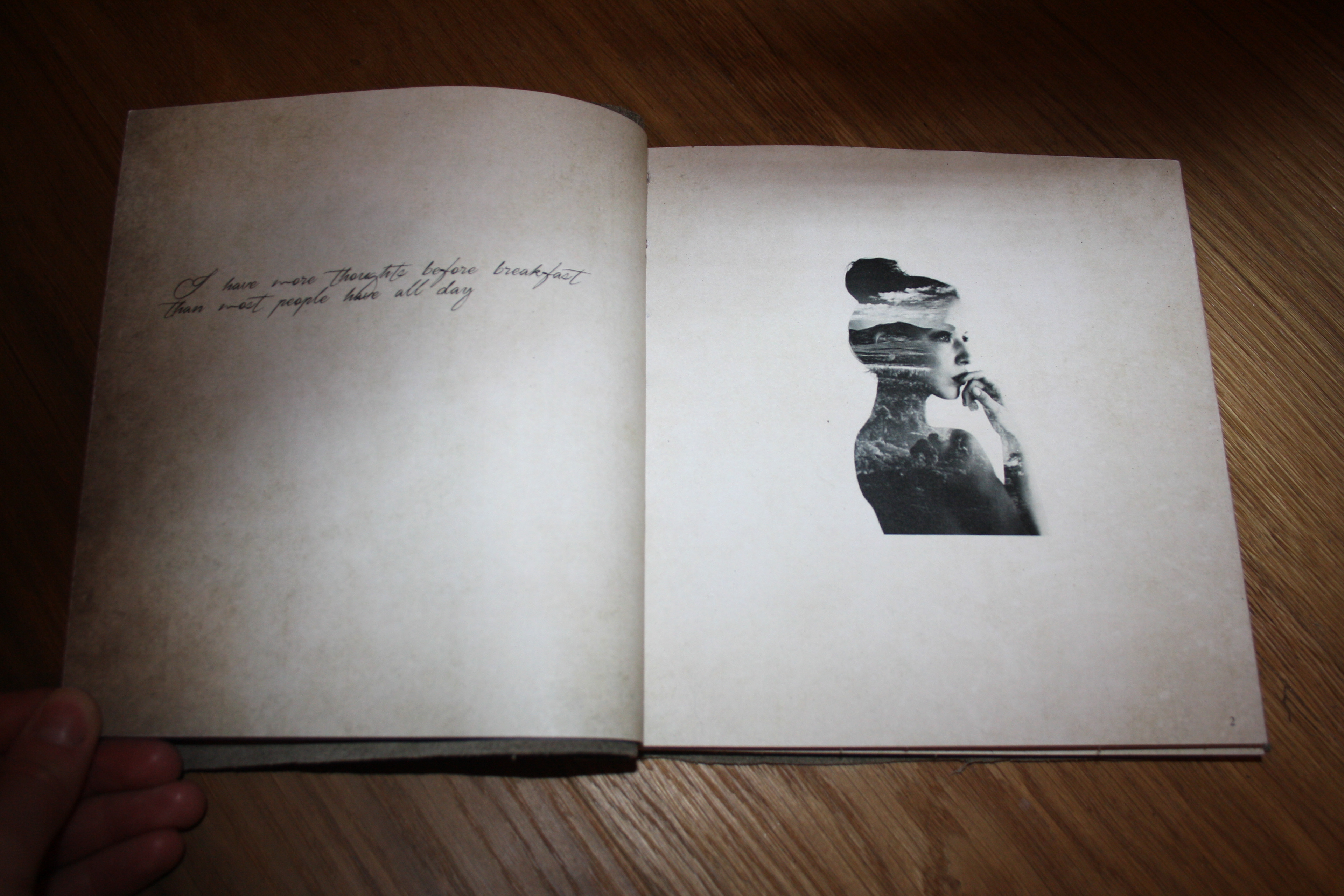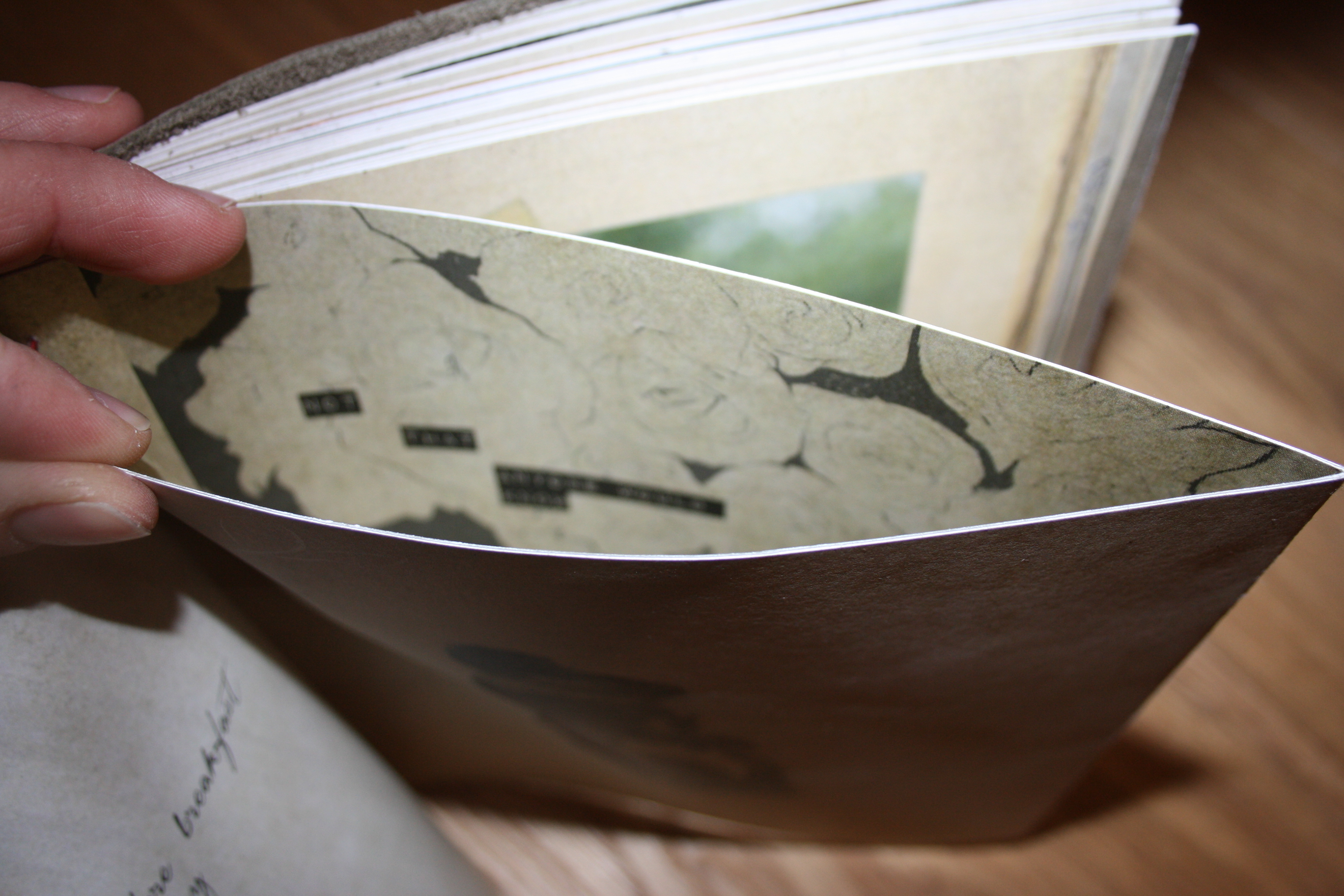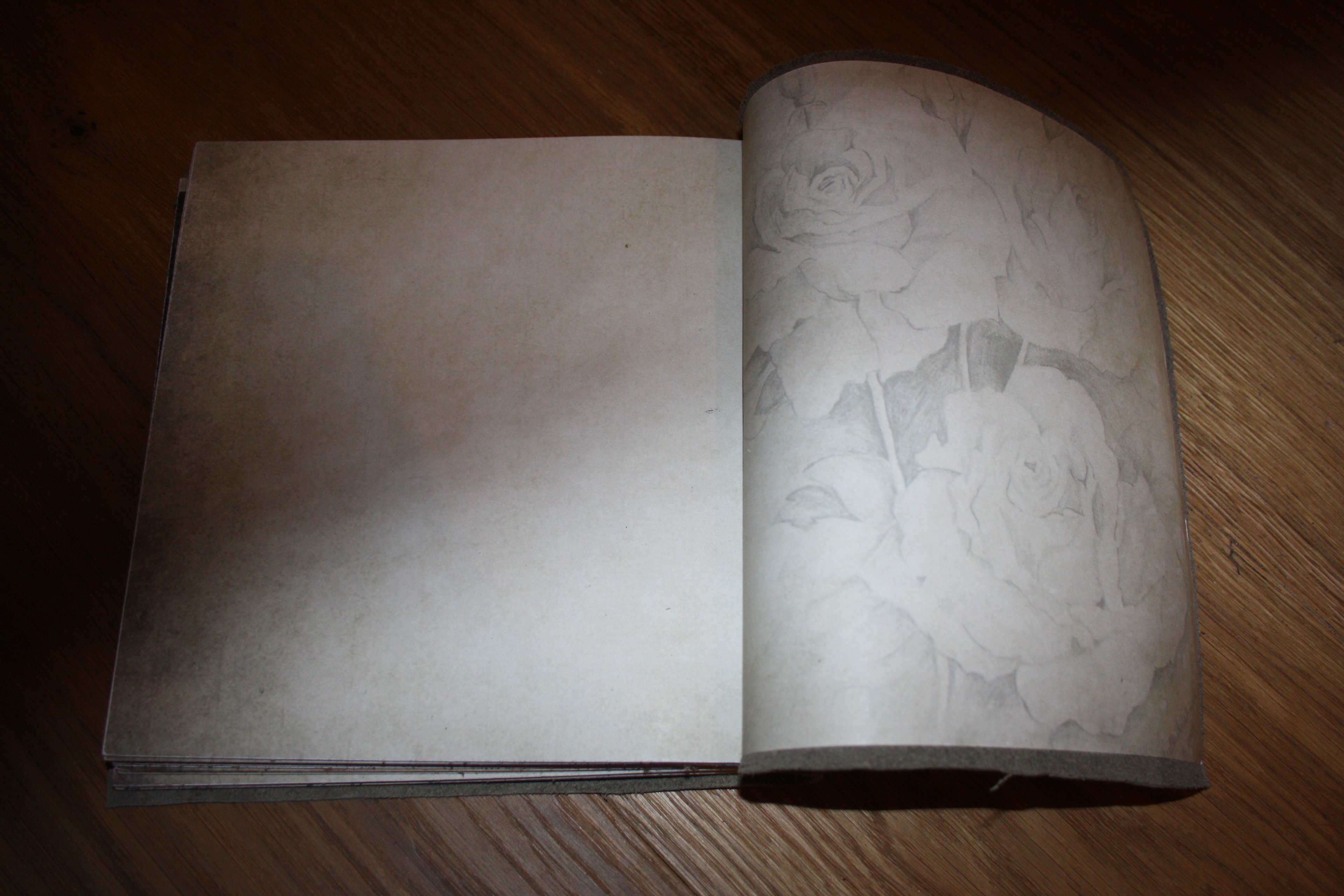 The pages had a scrapbook kind of feel yet were all printed rather than having bits that were loose or sticking out to keep it professional. I wanted it to feel earthy and personal. The photograph below was found online but the flower illustration behind it is my own.